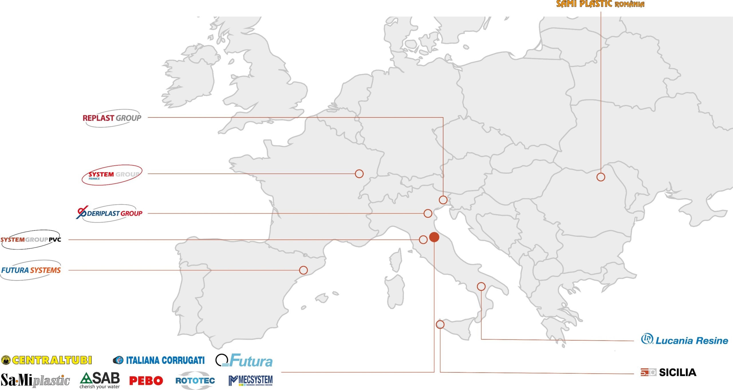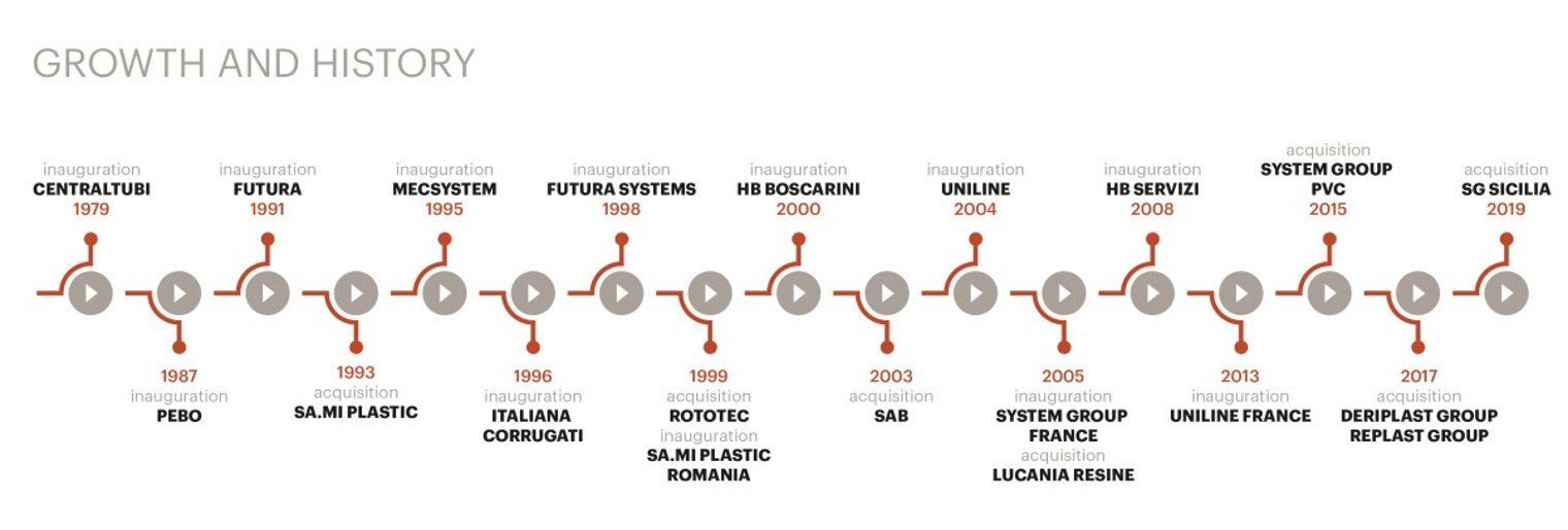 Toutes les autres entreprises sont chacune spécialisées dans la transformation des matériaux plastiques pour la production de tuyaux et de divers composants pour de multiples applications, ainsi que dans la commercialisation de certains produits et accessoires complémentaires non fabriqués au sein du Groupe.